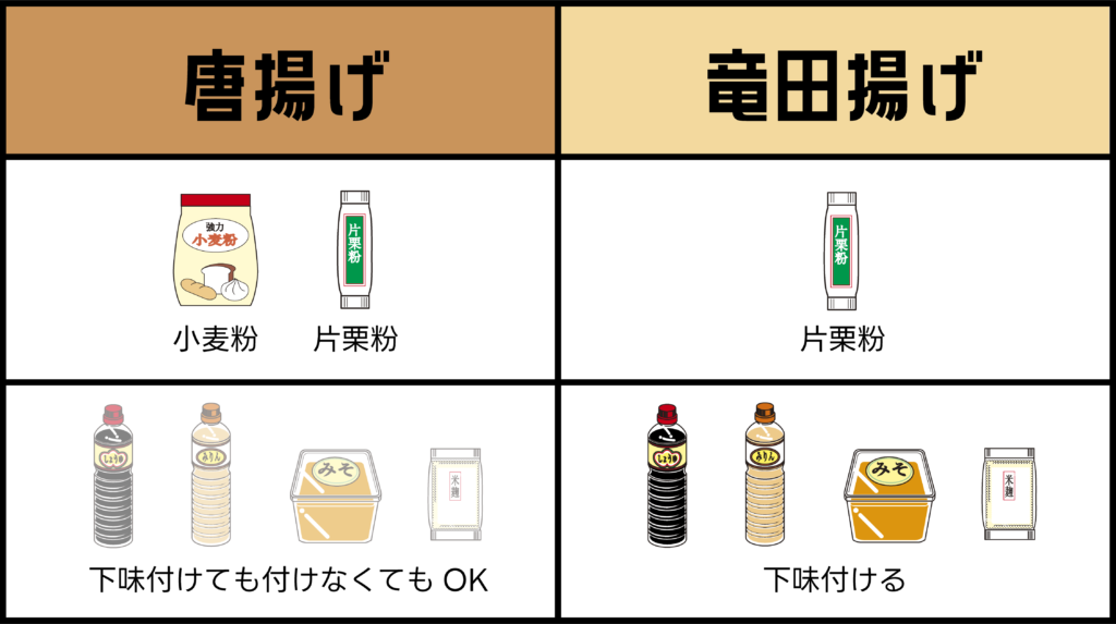 それと唐揚げは小麦粉で、竜田揚げは片栗粉みたいなイメージもあったけど、どうやら一概には言えないのか?